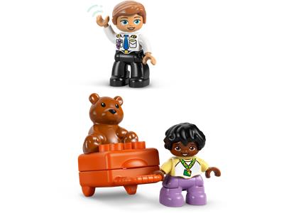 Help toddlers manage new experiences with the First Time at the Airport (10443) building toy, designed for imaginative play as they practice packing and checking in for a journey. This LEGO DUPLO set includes a security desk for pretend scanning and luggage chute play, an air traffic control tower, and a movable airplane that fits teddy, child, and pilot figures. The playset features an emotions wheel to discuss feelings about airports and travel, while toddlers build fine motor skills by packing the hinged suitcase and placing figures in the airplane. Logical-thinking and creativity grow as they complete each step of the adventure.