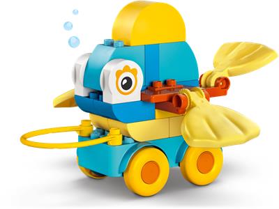 Ignite your toddler's imagination with the 3in1 Animals on Wheels building set. This engaging toy allows young animal lovers to construct a playful duck, fish, or dog, each designed to roll smoothly on its own wheelbase. Featuring a convenient pull-along handle, flexible tail, and hinged parts, it encourages interactive play while developing fine motor skills. The durable, easy-to-handle pieces are perfect for little builders to assemble, balance, and rebuild their creations again and again, fostering creativity, focus, and perseverance through endless playful learning adventures.