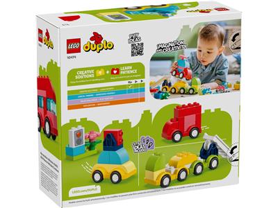 Unleash your toddler's imagination with the LEGO DUPLO My First Creative Vehicles set. This versatile playset allows young builders to construct four starter vehicles—a helicopter with a spinning rotor, a dump truck with a tipping bed, a fire truck with a hinged ladder, and a family car. After building, children can take them apart and use the bricks to invent their own unique creations, from police cars to double-decker buses. Designed for small hands, the easy-to-handle pieces help develop fine motor skills and hand-eye coordination while encouraging endless creative play. Perfect for toddlers beginning their building adventures.