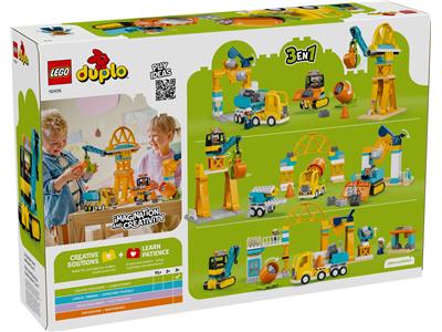 Introduce young builders to the 3 in 1 Construction Site and Vehicles (10476) set, where the action never ends! Kids aged 3 and up can dive into hands-on construction play, loading and unloading trucks and moving boulders and bricks with a fleet of LEGO DUPLO vehicles. Build a bulldozer with a lifting bucket, a dump truck that tips, a cement mixer with a spinning drum, and a crane with a hinged bucket arm. The bricks can also be assembled into a tall crane, a loading station for trucks to pass through, and a bridge for driving underneath. Through engaging play, children develop early skills like problem-solving and critical thinking as they figure out how to construct the models. They'll also boost spatial awareness by using the two included worker figures to transport bricks around the site with the trucks' fun features. This 84-piece set offers endless creative possibilities for budding builders.