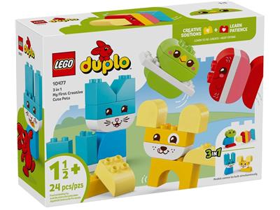 Fill playtimes with color and creativity with the LEGO DUPLO My First 3 in 1 Creative Cute Pets (10477) animal toy, featuring 8 building options using 24 easy-to-handle bricks for kids ages 18 months plus. Choose to build a dog, cat, bird, rabbit, mouse, or fish, and encourage color sorting and creative construction. This small gift promotes focus and perseverance as toddlers learn to select the correct bricks or invent their own imaginary creature. Contains 24 pieces.