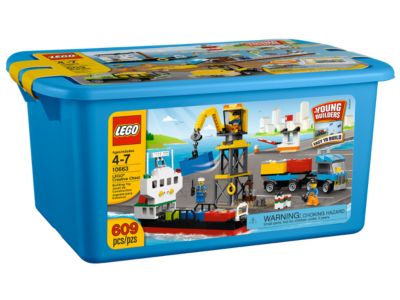 Unleash your child's imagination with the LEGO® Creative Chest, packed with over 600 harbor-themed bricks for dockside adventures. This set includes a building inspiration booklet to craft a crane, boat, truck, and toll barrier, plus three worker minifigures and a brick separator. The sturdy storage box keeps everything organized, making it an ideal starter set or expansion to any LEGO collection.