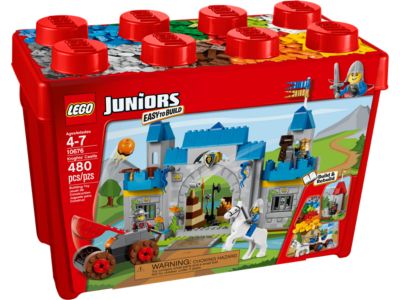 Ride out with the brave King's knight on his white horse to stop the evil black knight from stealing the treasure with his big catapult. This colorful, easy-to-build LEGO castle set includes 3 minifigures: the King, King's knight, and evil black knight, plus a Knights' Castle, large and small catapults, and the knight's horse. The set comes in an iconic brick-shaped box for easy storage, and with extra bricks and age-appropriate instructions, your young knight can rebuild the castle into an enemy tower or the King's horse carriage for more play challenges.