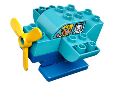 Watch little pilots soar with My First Plane! This LEGO® DUPLO® set offers hours of imaginative play with an easy build that helps develop fine motor skills. The window brick features friendly characters to spark storytelling and role-play adventures. After landing, rebuild the plane into a boat or helicopter for even more fun. Designed to be safe and enjoyable for small hands, this set includes a turning propeller and a double-sided character brick to inspire endless stories. Help your toddler build confidence and basic skills with this charming, versatile toy. The plane measures over 2” (7cm) high, 3” (10cm) long, and 3” (9cm) wide.