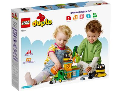 Build strong foundational skills with the LEGO® DUPLO® Town Construction Site (10990). This engaging set sparks imaginative role-play and encourages self-expression for toddlers aged 2 and up. Three friendly construction workers team up with three vehicles: a bulldozer moves the boulder, a crane lifts it to the chute, and the cement mixer catches it below. After a busy day, the crew enjoys a pizza reward. Designed for little hands, the crane swivels with a working grab bucket, and the vibrant cement mixer features a spinning drum, flashing lights, and three fun siren sounds for sensory play. This educational construction site offers endless creative fun, helping preschoolers explore and understand the world around them.