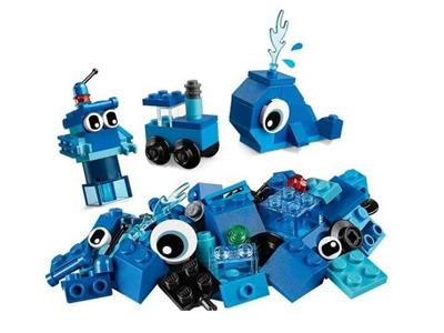 A vibrant assortment of blue LEGO bricks designed to spark creativity in children. This set includes three simple models to build: a friendly blue whale with a waterspout, a train with rolling wheels, and a mini robot with movable arms. Easy-to-follow instructions help kids start playing quickly, then they can mix the bricks to redesign the models or invent their own creations. Through open-ended building and imaginative play, children develop essential skills that support lifelong learning and creative confidence.