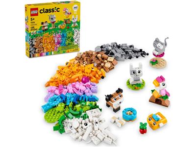 This LEGO® Classic Creative Pets set is perfect for young animal enthusiasts aged 5 and up. It includes 450 colorful bricks, special pieces with eyes and mouths, and simple instructions to build a dog with a bowl and bone, a cat on a stand, a hamster with an apple, a rabbit with a carrot, and a bird on a perch. Kids can then rebuild their pets using alternative colors, shapes, and functions for endless creative play. A guide with 10 ideas helps kick-start the fun, encouraging imaginative building and skill development.