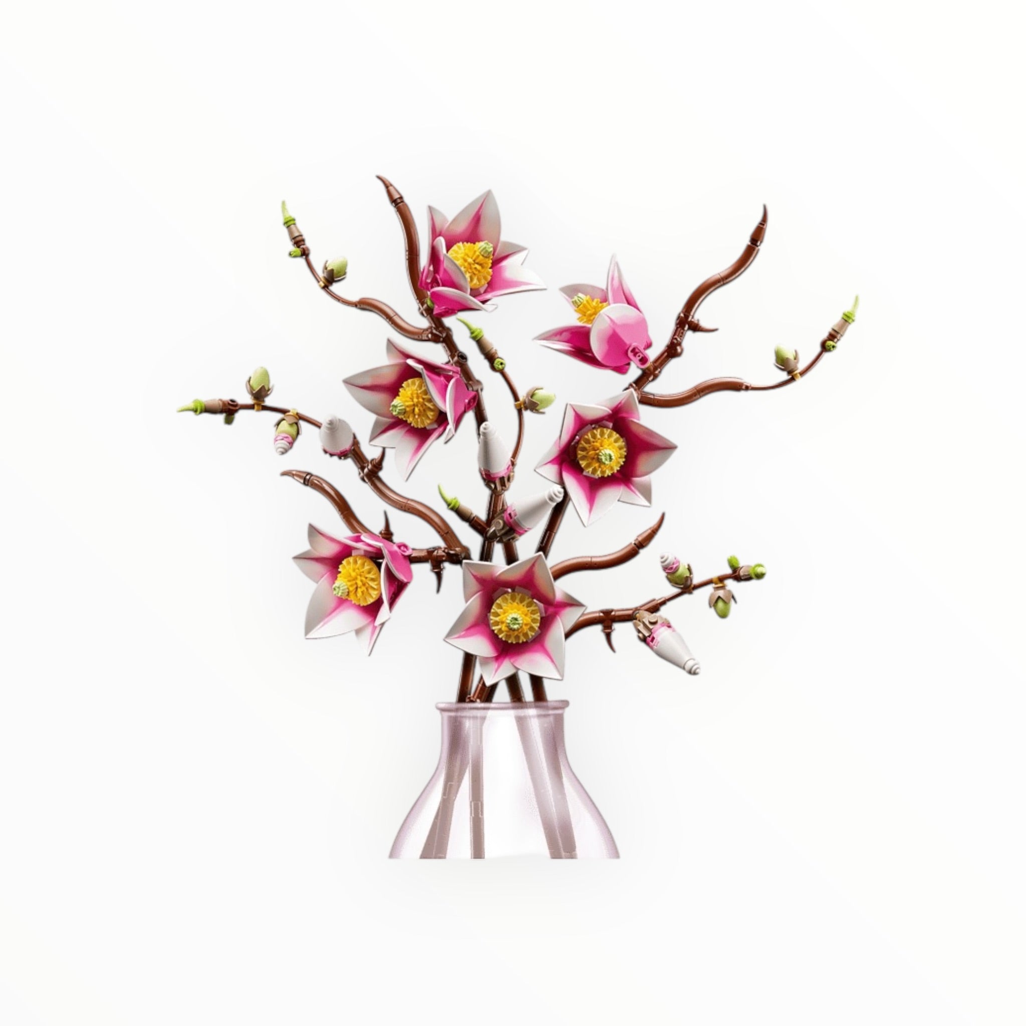 Craft a stunning botanical display with the LEGO® Botanicals Magnolia Branches set. This 435-piece kit lets you build five intricately detailed magnolia branches, featuring dual-tone petals for lifelike beauty. Discover clever details like cupcake-piece carpels, frog-shaped wood knots, and egg-shaped buds. Once assembled, these elegant branches serve as lasting floral decor and can be combined with other LEGO Botanicals sets for a personalized arrangement. A perfect, relaxing gift for any occasion, this set also includes digital building guidance via the LEGO Builder app.