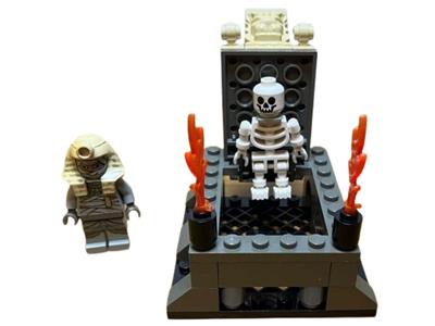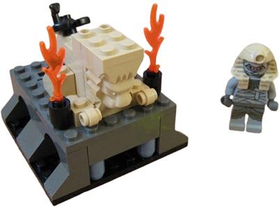 The Lego Curse of the Pharaoh set, part of the Adventurers Egypt series, features a dual-face Mummy with open and sleeping eyes for a scary look, plus a glow-in-the-dark skull. Released in 2002, this 51-piece set includes two minifigs—a Mummy and an old-style skeleton—along with a scorpion and a trans-neon green spider. It also comes with a modified brick featuring a lion head for an authentic Egyptian touch. Designed for ages 7–12, this set is easy to build and offers exciting play.
