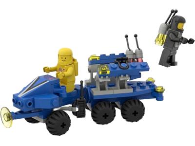 Near complete, missing one of the gray jet packs. Pieces in good condition overall for vintage set. Gold faded from yellow minifigure. Black minifigure looks good. |