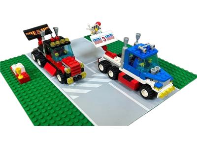 Vehicles are complete. Some blue and gray pieces are discolored. Includes red and blue minifig(wrong face) in great condition. No baseplate, instructions or box. |