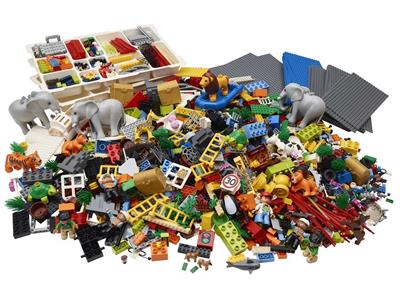 The LEGO SERIOUS PLAY Identity and Landscape Kit enables strategic workshops for 10-12 participants, featuring a comprehensive assortment of LEGO and DUPLO bricks, baseplates, and sorting trays. It includes specialized elements like animals, wheels, trees, minifigure parts, and structural components to facilitate large-scale model building for in-depth organizational development and planning sessions over one to two days.