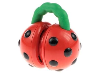 A vibrant first toy designed to stimulate visual tracking and introduce various textures. The chewable handle and raised black spots encourage tactile exploration, supporting sensory development from infancy.
