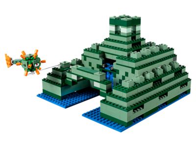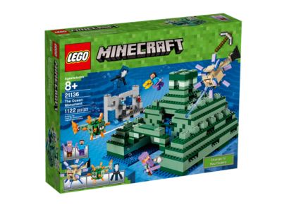 Prepare for an epic underwater adventure with the LEGO Minecraft Ocean Monument! Battle the Elder Guardian using a spring-loaded shooter, activate the dry sponge mechanism to drain water and enter the monument, then pull the lever to unlock a treasure chamber packed with golden blocks. This action-packed, easy-to-reconfigure playset includes Steve and Alex minifigures, plus squid, Guardian, and Elder Guardian figures, and features a cave with a furnace. Remove the roof and fold out the model for full access to the detailed interior.