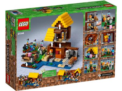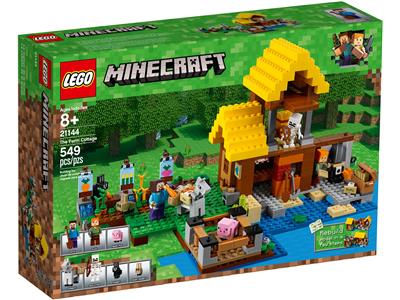 Build a thriving waterside LEGO Minecraft farm cottage with two levels, detailed interiors, and outdoor features. Harvest carrots, wheat, and beetroot, care for a baby pig and donkey, and protect crops from rabbits—and yourself from a skeleton. Includes Steve and Alex minifigures, plus donkey, baby pig, rabbit, baby rabbit, and skeleton figures. Features a buildable farm with a two-level house, carrot, wheat, and beetroot patches, animal pen, grass, and water areas. Use saddlebags to transport harvests and nametags with an anvil to name the mobs.
