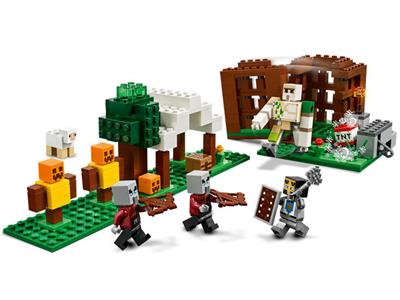 LEGO Minecraft Pillager Outpost Playset – Build a rescue mission with Pillagers, Iron Golem, and Knight figures. Features a modular outpost with tent, archery dummies, and TNT explosion function for creative play.