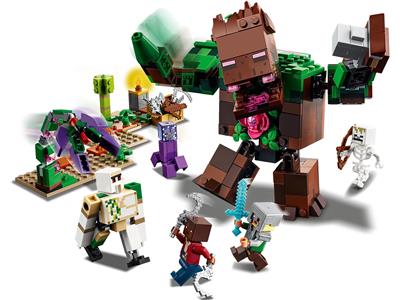 No one is safe in the jungle with LEGO Minecraft The Jungle Abomination (21176). This build-and-play set features a massive, movable-head monster with an opening mouth and crushing arm, plus a Minecraft explorer, archaeologist, enchanted Creeper, skeleton, iron golem, and a buildable articulated plant with grabbing petals. Players can reconfigure the environment for endless displays and imaginative adventures.