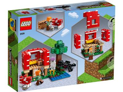 LEGO Minecraft The Mushroom House lets players aged 8+ build a giant mushroom home with removable roof and walls for easy access to the crafting table and furniture. Outside, Alex collects mushroom stew from a mooshroom cow, but the scene turns adventurous when a skeleton spider jockey appears. The set includes Alex, Mooshroom, and Spider Jockey figures, along with authentic accessories and endless imaginative play.