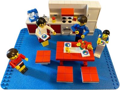 85% complete (see below for details). Minifigure has worn bib sticker. Cabinets & shelves are yellowed. Other white pieces are ok. Maxifigures very good condition. Blue plate 24x 32 excellent condition. Bricks could use bath. No box / instructions |