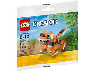 Experience the thrill of the wild with the adorable LEGO® Creator Tiger, showcasing its distinctive orange and black stripes and impressive white saber teeth.