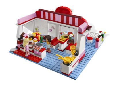Andrea works at the City Park Café, where she loves serving tasty treats while daydreaming of her big performance. The set includes two mini-doll figures: Andrea and Marie. It features a kitchen area, indoor and outdoor dining areas, a counter, and a cash register. Accessories include LEGO money bricks, a frying pan, spatula, three muffin tins, a mixer, utensils, a baking tray, bowl, pie, and a juice carton. Kids can bake goodies in the café kitchen, serve customers, and pay with LEGO money bricks. The outdoor dining area is perfect for enjoying a milkshake in the sun after school.
