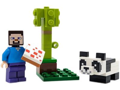 LEGO Minecraft 30672 Steve and Baby Panda Polybag includes 35 pieces to build Steve, a baby panda, and a tree. Features printed LEGO elements for Steve’s face and a new molded and printed panda head piece.