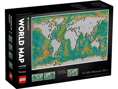 Create your own world with the LEGO® Art World Map, the largest LEGO set ever. Build one of three vibrant maps and customize oceans with your personal touch. Move landmasses to highlight different regions and mark special places with colorful pins. Enjoy a relaxing build with 11,695 pieces, including decor plates, a frame, hanging elements, and a tile tool. Listen to the included Soundtrack for an immersive audio tour as you craft your unique display.