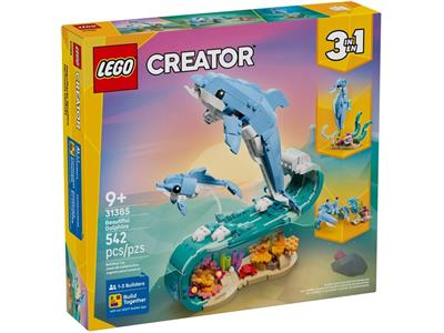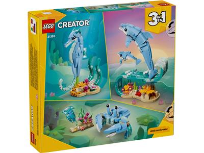 Unleash the magic of the ocean with the LEGO® Creator 3 in 1 Sea Animals: Beautiful Dolphins (31385) set. This 542-piece building adventure offers endless creative possibilities for kids ages 9 and up. Build a dynamic scene of an adult and baby dolphin riding a cresting wave above coral, then rebuild the same bricks into a posable seahorse on a colorful stand with seaweed and a clam, or a playful crab beside sea plants and a jellyfish. Each beautifully detailed model features posable parts for interactive storytelling and doubles as stunning decor. Perfect for animal lovers, this set fuels imagination and makes a fantastic gift. The intuitive LEGO Builder app provides a guided, 3D building experience to help bring every ocean creature to life.