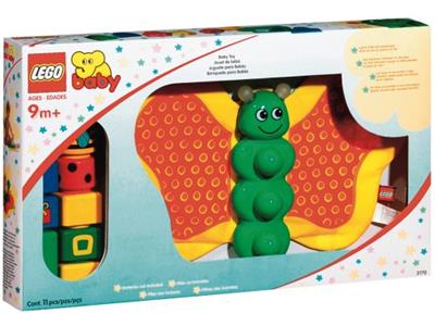 A colorful butterfly toy lights up and plays sounds as your baby stacks bricks on its wings, encouraging playful learning and coordination from nine months old.
