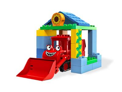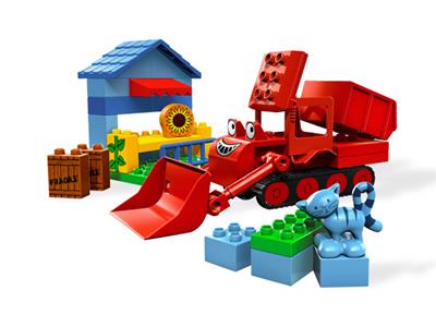 Muck the bulldozer is on a rescue mission at the Sunflower Factory, where Bob's friend lifts and carries cargo all day. Pilchard the cat will join in after her nap. Great for young builders. Includes Muck, Pilchard, and DUPLO bricks for building the factory. Features lift and tip actions.