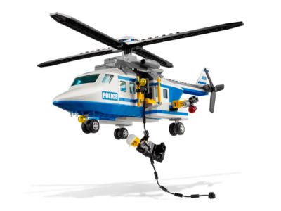 A thrilling police chase unfolds as a robber speeds away in a getaway van, a backpack stuffed with cash beside him. Soar into action with the Police Helicopter, the only vehicle fast enough to catch him. Skillfully maneuver above the van and lower an officer down on the rope to make the arrest and recover the stolen money. This exciting set includes four minifigures: three police officers and the robber, plus two detailed vehicles—the Police Helicopter and the getaway van. Expand your LEGO City with other police sets for even more law enforcement adventures.