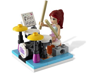 Mia loves rocking out on her drum set in her bedroom, keeping the beat to her favorite songs on the radio. After a fun practice session, she can relax on her cozy bed and write in her secret diary, which she keeps safely tucked away in her bedside table. The set includes Mia as a mini-doll, along with a detailed bedroom featuring a bed, drum set, radio, lamp, vase, and a special basket. Discover hidden letters inside the diary or the drawer for extra surprises. Every piece is fully compatible with other LEGO sets, inviting endless creative play.