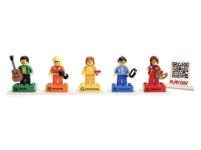 Lego Employee gift to Lego Play Day 2019 (6th September). Contains 5 special minifigures and 5 special bricks (and some equipment like Guitar, Paint Brush, Palette, Dumbbell). |