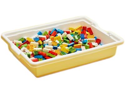 The LEGO® Braille Bricks toolkit includes a minimum of 300 bricks in five signature LEGO colors, with math symbols consistently in white. It comes with three base plates for building, a brick separator, and a box cover that provides an overview of the alphabet and symbols in the specific national braille language.