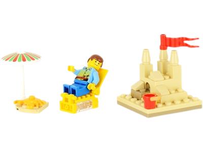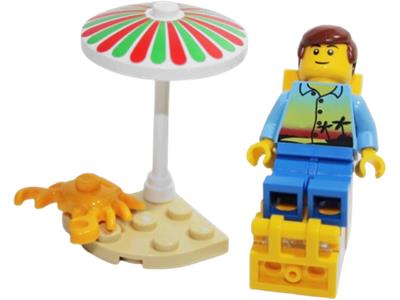 Enjoy a sunny beach day with this LEGO® set! Build a detailed sand castle complete with a red flag and bucket, then relax in an adjustable lounge chair under a colorful beach umbrella. The set includes a minifigure in a tropical shirt and a playful LEGO crab, making it a perfect seaside addition to any collection. Ideal for gifting to LEGO enthusiasts.