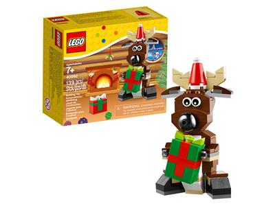 Bring festive cheer to your holiday celebrations with this charming LEGO® Reindeer, designed to carry colorful gifts. Customize its look by placing the included elf cap on its head and adjusting the posable ears and legs for a variety of playful expressions. The reindeer can hold two wrapped gift elements in its posable arms, making it a delightful seasonal display or gift for any LEGO fan. This adorable figure stands over 4 inches (11 cm) tall, adding a touch of holiday magic to any setting.
