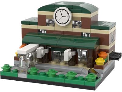 Step into the micro-build Train Station, a compact LEGO® model bursting with intricate details. The entrance façade and prominent clock capture the classic station charm, while the track out front features a ready-to-go train. A micro-build car ensures you arrive on time, and a side connector allows you to link this station with other Bricktober buildings (sold separately) to expand your miniature world.