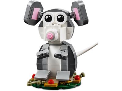 Celebrate the 2020 Lunar New Year with this adorable LEGO® Iconic 40355 Year of the Rat set. This buildable rodent boasts large eyes, a pink nose, and a long, expressive tail, with posable arms, legs, ears, and head for dynamic display. The model comes with a decorative podium adorned with flower and leaf details, along with an embossed money envelope featuring traditional gold-colored printing. The resealable packaging includes a printed to/from label, allowing you to add a personal touch when gifting.