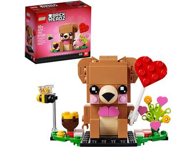 The LEGO® BrickHeadz™ Valentine's Bear (40379) is a charming buildable model featuring a cute brown bear holding a large red heart. It sits on a picnic blanket accompanied by a little bee friend, a honey jar, and colorful flowers, all displayed on a sturdy baseplate. With 150 pieces, this collectible set stands over 3” (8cm) tall and makes a thoughtful, lasting gift for any special person—whether for Valentine's Day, a birthday, Christmas, or just because. Suitable for ages 10 and up.
