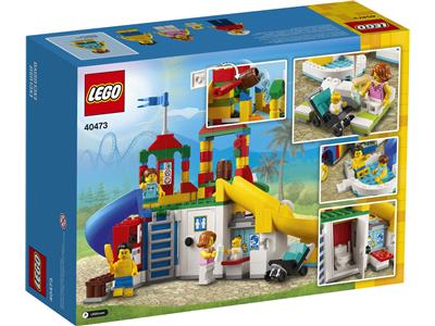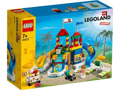 Relive the excitement of the water park with this detailed build, featuring the iconic tower, two slides, a tipping bucket, and two pools. The set includes a shower area with lockers, a wheeled café, two recliners with a side table, and a garbage can. Four minifigures—an employee, a mom, dad, and boy in swimwear—along with a baby figure, stroller, and bottle bring the scene to life. Authentic touches like the park map and stickers add to the fun. Perfect as a souvenir or gift, this 360-piece set captures the spirit of a day at LEGOLAND® Water Park.