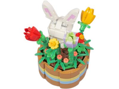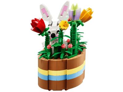 Celebrate the arrival of spring with the LEGO® Easter Basket (40587). This charming set features a cute Easter bunny nestled within a brown gift basket filled with vibrant spring flowers. The bunny's head rotates and its ears are posable, adding playful interactivity. Perfect as a decorative piece for your seasonal displays or as a thoughtful Easter gift, this model is designed for builders ages 9 and up, including teens and adults. The finished basket stands over 13 cm (5 in.) high, 11 cm (4 in.) wide, and 9 cm (3 in.) deep, making it a delightful tribute to the season.