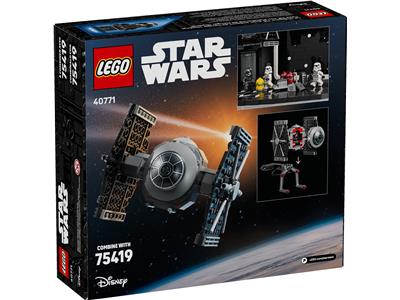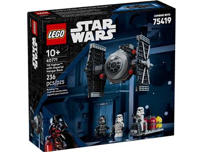 LEGO Star Wars TIE Fighter & Imperial Hangar Rack (40771) – a 236-piece building kit for ages 10 and up. Includes a detailed TIE Fighter with detachable front cockpit, an Imperial hangar rack that connects to the Death Star (75419), 3 minifigures (2 Stormtroopers with blasters and a TIE Pilot), plus a service cart with detachable equipment. A perfect companion set for Death Star Ultimate Collector Series builds.