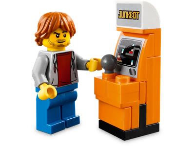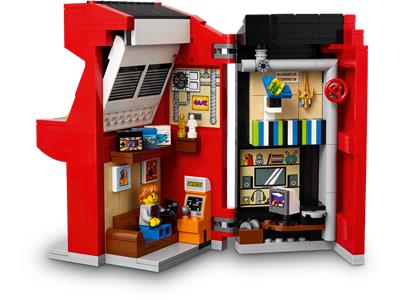 Create a retro gaming haven with the LEGO Arcade Machine (40805)—a nostalgic decor piece for gamers aged 10 and up. This detailed display model opens to reveal a cozy gaming room featuring a buildable mini arcade station, computer, sofa, and a LEGO minifigure holding a remote control. Drop the included coin elements into the arcade slot and watch them swoosh back out. Perfect as video game merchandise, this set sparks memories of classic arcades and makes a playful addition to any game room.