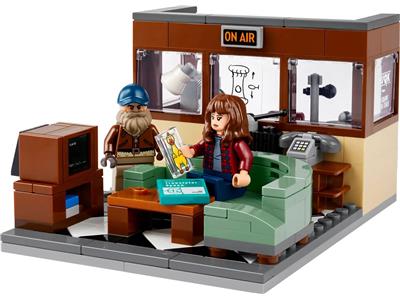 Immerse yourself in the retro charm of Hawkins with the LEGO Icons Stranger Things: WSQK Radio Station. This detailed 234-piece set lets you build the iconic station interior, complete with a DJ booth featuring a mixer, tape machine, record player, and microphone. Relax in the lounge area with its cozy couch and vintage television. Bring the story to life with Joyce Byers and Sheriff Hopper minifigures, plus a special printed tile of the station's famous rubber chicken. A perfect collectible for adult fans to display and enjoy.