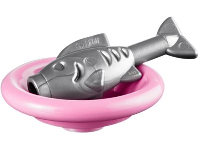 This adorable penguin loves to play on its slide in the Penguin's Playground. After fun on the slide, tuck it into its cozy bed for a nap, then offer a fish from its pink bowl when it's hungry. The set includes a penguin figure with a bow, a decorated white archway, a slide, a bed, and a feeding bowl. You can also care for your penguin online for more building ideas.