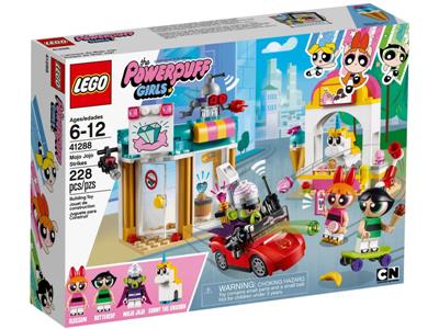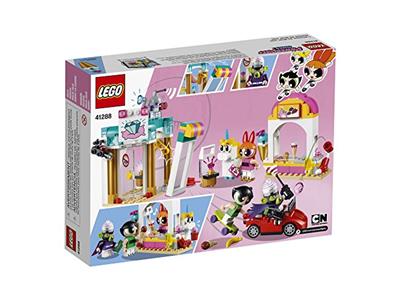 Protect Townsville with the exciting LEGO® The Powerpuff Girls⢠Mojo Jojo Strikes set! This action-packed kit includes an ice cream stand with a counter and a launcher, a jewelry store with a functional door, a rotating security camera, and a breakaway wall. Also featured is a getaway car equipped with an aimable stud shooter, storage for loot, and a rear handle for a hero to grab onto. The set comes with Blossom, Buttercup, and Mojo Jojo minifigures, plus Donny the Unicorn and a robot figure for endless imaginative play.