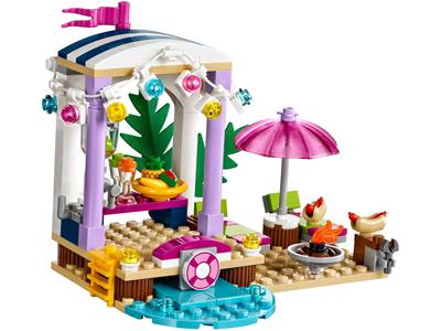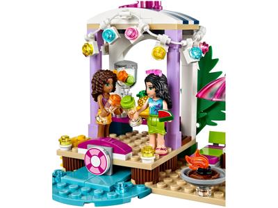 Hit the beach in style with the LEGO Friends Andrea's Speedboat Transporter set. This cool set includes a sporty beach car with a trailer and rope to tow a speedboat with steering controls and a turning propeller. At the beach party, you’ll find a juice bar, blender, two sun loungers, a parasol, and a barbecue. The set comes with Andrea and Emma mini-doll figures, a turtle figure named Bubbles, and accessory elements such as a guitar, juice glasses, pineapple, bananas, sausages, hot dog buns, a basket, and a magazine tile.
