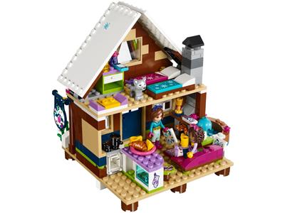 Experience the charm of the LEGO® Friends Snow Resort Chalet, a cozy two-story log cabin perfect for winter adventures. Relax in the outdoor hot tub, prepare meals in the kitchen, and unwind in the lounge by the crackling fireplace. Upstairs, a comfortable bedroom features three beds, a vanity, and a cozy spot for Luna the husky. Explore the snowy surroundings with the included snowmobile, and enjoy fun accessories like skis, a board game, and tasty treats. Includes Andrea and Amy mini-dolls in winter outfits, plus Luna for endless imaginative play.