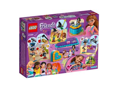 The LEGO Friends Heart Box Friendship Pack (41359) lets children play out endless stories with two buildable heart boxes for Vicky and Olivia. As one girl reads, the other acts out the plot using dress-up accessories—be a pirate, a police officer, or an astronaut with a magic wand. All pieces store neatly inside the heart-shaped boxes, with the larger lid doubling as a stage for on-the-go play. Includes two mini-dolls, a poodle, and a frog.