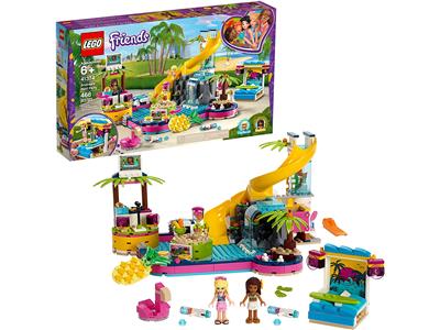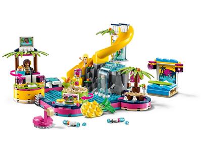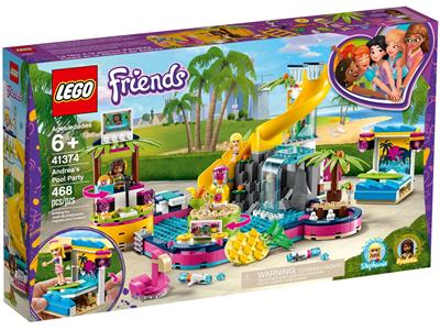 LEGO® Friends Andrea’s Pool Party set is the ultimate pool party for kids and their friends. Kids can host an exciting pool party with Andrea, mixing tunes at the DJ box, or relax and enjoy the fun with Stephanie. This set features a pool with a slide, waterfall, wave machine, aquarium, juice bar, changing room, and toilet.